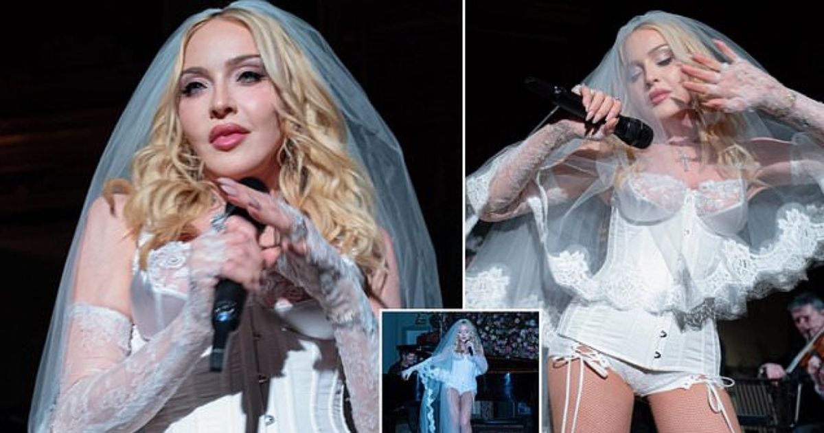 The star made a grand entrance in a bridal inspired esthetic that made her iconic with her 1984 hit 'Like a Virgin'. As part of the campaign and appearance linked to D&G during Milan Fashion Week, she was seen modeling a bold lingerie-themed bridal outfit.