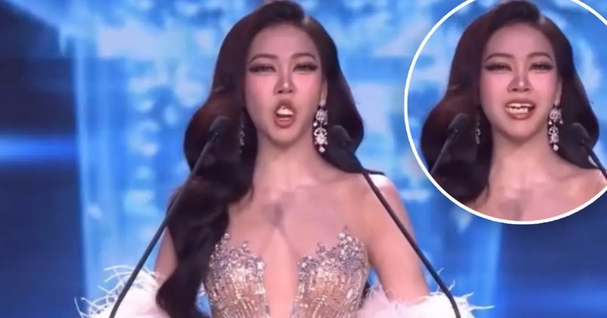 Unlucky beauty pageant contestant shocks viewers after losing her teeth mid-speech — then bravely continues on