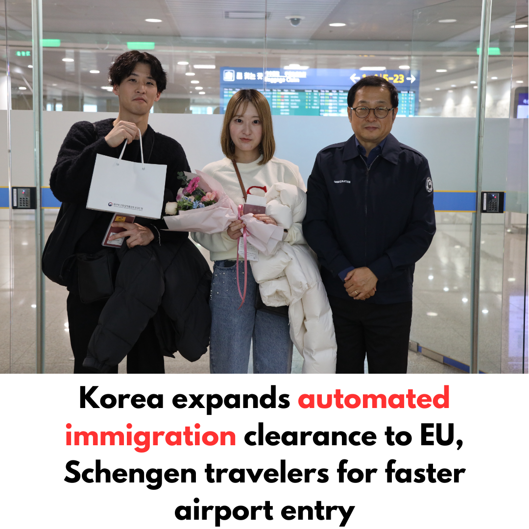 South Korea has expanded access to its automated immigration clearance system, allowing travelers from the European Union and Schengen Area to use fast-track entry gates at major airports. The move is aimed at improving efficiency and reducing waiting times for international arrivals.