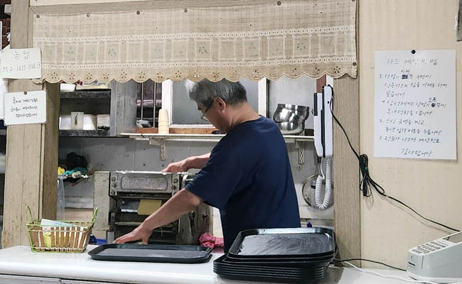 그때서야 느릿느릿 주방으로 향한다. 기계음이 들리고, 5분 정도 지나니 우동 한그릇이 뚝딱 나온다. 손님은 앉기 전에 단무지와 깎두기를 가지런히 놓고 주문한 음식을 받아 온다. 기계뿐만 아니라 손님들도 자동(?)적으로 움직인다. 그도 그럴 것이 이곳은 '1인 사장'이 혼자 운영하고 있기 때문이다.