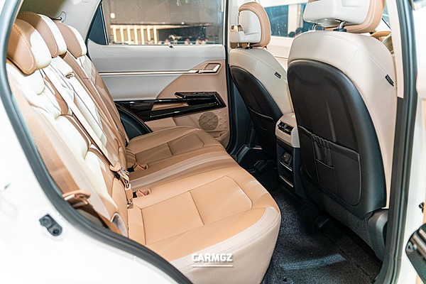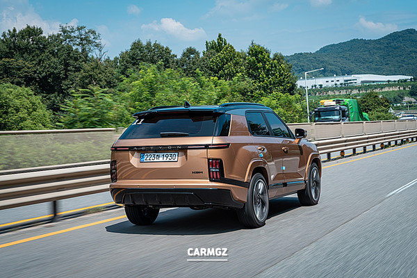 측면부에서는 플로팅 루프 라인을 통해 다이나믹함 모습을, 20인치 다이아몬드 컷팅 휠은 역동성을 강조한다. 후면부 역시 직선과 수직의 조화로 와이드함과 볼륨감을 강조했고, 리어 콤비네이션 램프에는 ‘건곤감리’ 의 ‘리’ 패턴을 적용해 전면부와 통일된 디자인을 완성했다.