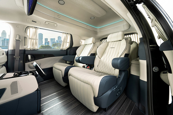 실내가 좀더 고급스러움의 선택지가 넓어졌다면, 노블클라쎄에서 직접 디자인하고 제작한 시그니처 룸램프는 2열에 탑승한 VIP가 편안한 조도를 제공해 이동 간 안락한 서비스를 경험할 수 있게 했다. 이와 함께 LED 웰컴 라이트가 적용된 전동 사이드 스텝은 탑승하는 순간부터 내리는 순간까지 운전자와 탑승자를 위한 안전성을 더욱 더 강화했으며, 편안한 승차감을 위해 ▲MR댐퍼 ▲터치식 통합 컨트롤러 ▲전동 풋레스트와 ▲전동 레그레스트는 물론 ▲냉온장고 ▲러기지 옷걸이 바 ▲시트백 파우치 등 각종 편리 기능도 옵션으로 선택해 일등석과 같은 느낌을 자아내게 한다.