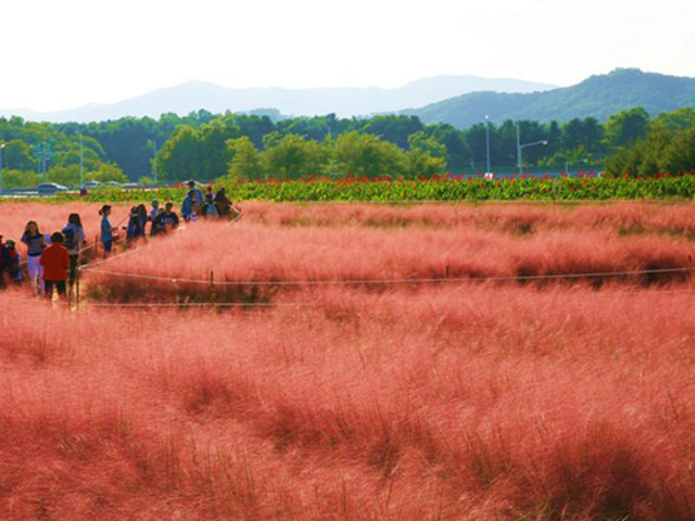 핑크뮬리란 무엇일까? 핑크뮬리는 벼목 벼과 쥐꼬리새속에 속하는 여러해살이풀로 우리말로는 ‘털쥐꼬리새’라고 한다. 분홍색이나 자주색의 꽃이 피어 핑크뮬리라고 부르며, 억새와 비슷하게 생겨서 분홍 억새라고도 부른다. 핑크뮬리는 9~11월경 분홍빛이나 연한 자줏빛, 보랏빛의 꽃이 피어 멀리서 보면 핑크빛 물결처럼 보인다.
