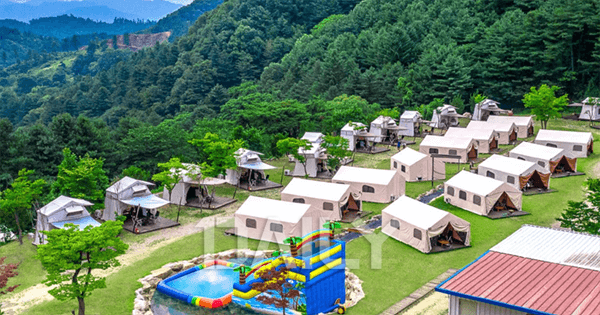 숲이 가까이 위치한 경기도 포천시의 ‘민트글램핑’도 추천할만하다. 객실에서는 넓은 잔디공원이 보이며, 온수 수영장도 근처에 있어서 가족 단위로 시간을 보내기 좋은 곳이다. 향기로움이 가득한 라벤더 가든도 근처에서 만날 수 있다. 글램핑장 근처에는 영농체험시설, 편의점, 카페 등의 다양한 즐길 거리를 찾아볼 수 있으며, 화장실과 샤워실도 갖춰져 있어 편리하게 이용할 수 있다.