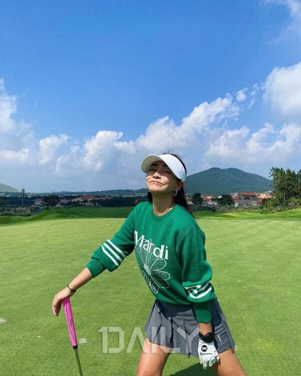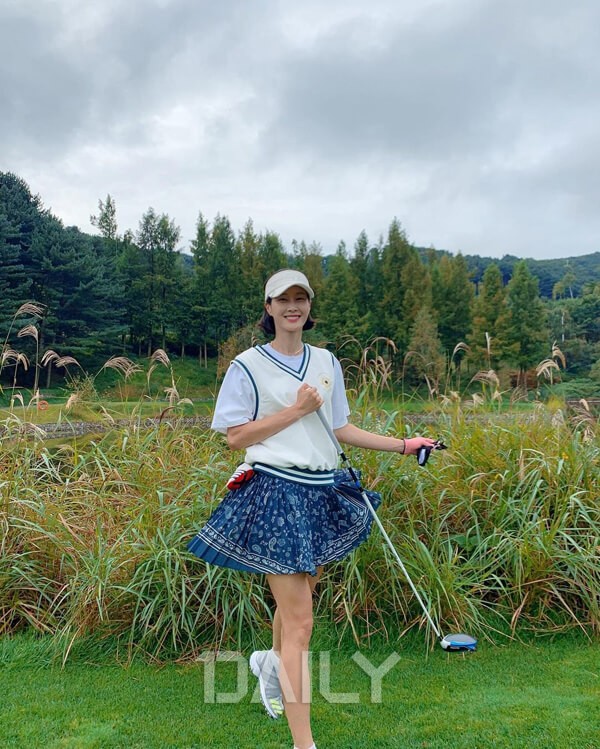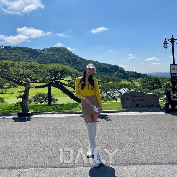 임수향이 마치 병아리 같은 골프 패션으로 극강의 러블리함을 뽐냈다. 그녀는 얼굴을 화사하게 만드는 옐로 컬러의 티셔츠에 우아한 베이지 미니스커트를 매치했다. 다리가 붓고 무거워지는 것을 방지하는 니삭스를 매치해 실용성은 물론, 다리가 길어 보이는 효과를 더했다. 임수향은 니삭스와 신발의 컬러를 ‘화이트’로 통일시켜 넘사벽 비율을 뽐냈다.
