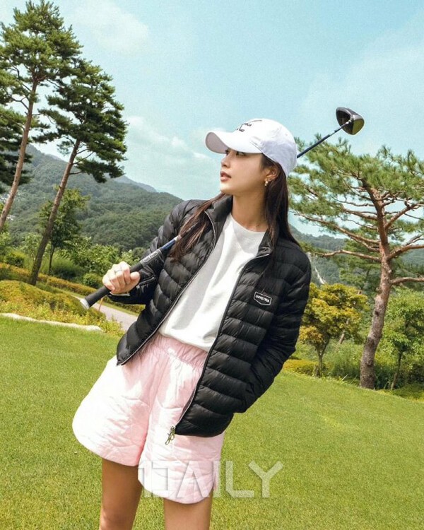 골프 패션에도 변화를 줘야 할 때가 왔다. 기은세는 가벼운 경량 패딩에 쇼트 팬츠를 매치해 페미닌함과 캐주얼함이 동시에 느껴지는 필드 룩을 선보였다. 볼캡과 이너 티셔츠 컬러를 맞춰 통일성을 더한 모습으로 정형화된 골프 룩에서 벗어났다. 경량 패딩, 쇼트 팬츠 같은 경우는 필드 룩뿐 아니라 일상에서도 쉽게 매치할 수 있어 하나쯤 장만하면 어디에나 활용하기 좋은 아이템이겠다.