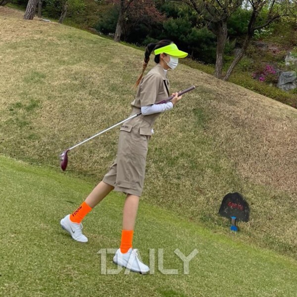 티아라 효민은 패션 스펙트럼이 넓은 여자 연예인 중 한 명이다. 포멀 룩, 캐주얼 룩, 꾸안꾸 룩 등 다양한 룩을 선보이며 대중들의 눈을 즐겁게 하고 있다. 효민이 선보인 패션 중 골프 룩도 눈길을 끈다. 효민은 골프 점프슈트를 선택해 필드 패션의 틀을 깼다. 포켓이 달려 활용도가 높은 점프슈트에 쨍한 네온 컬러의 선 캡과 양말을 매치해 트렌디함을 더했다. 스커트에 비해 활동성이 높고, 팬츠에 비해 편안한 점프슈트로 색다른 골프 룩을 뽐내볼 것.