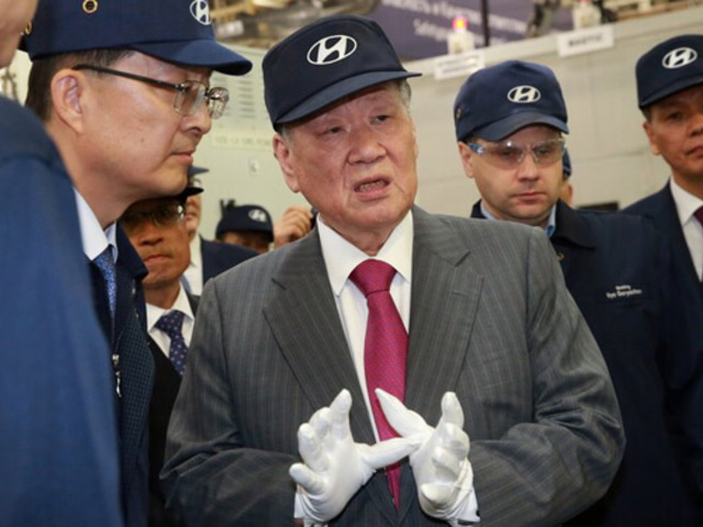 러시아 현대차 공장을 방문해 생산 판매 전략을 점검하고 있는 정몽구 당시 회장 |