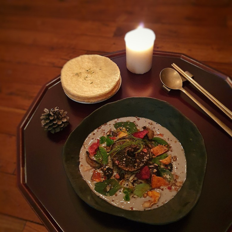오픈형 주방으로 돼있어 음식을 만드는 과정을 볼 수 있는 이곳은 현대적이고 깔끔한 인상을 주는 공간이다. 메뉴는 송이솥밥 정식, 표고버섯 솥밥 정식, 우엉연근 솥밥 정식, 사찰 만두전골 정식 등이 있으며 송이국수 정식과 능이버섯 국수 정식 등의 국수 메뉴도 있다. 정식을 주문하면 간단한 샐러드와 채소 전이 먼저 제공되며 밥에 곁들여 먹을 나물 반찬 몇 가지가 나온다. 밥과 함께 나오는 청국장은 담백하면서도 깔끔한 맛으로 많은 사람들이 좋아하는 음식이다.