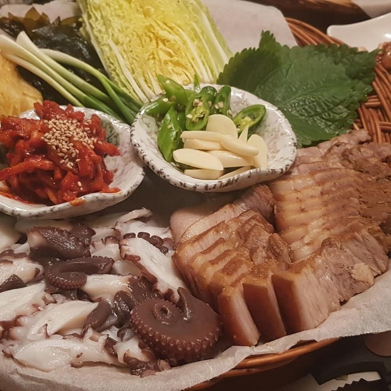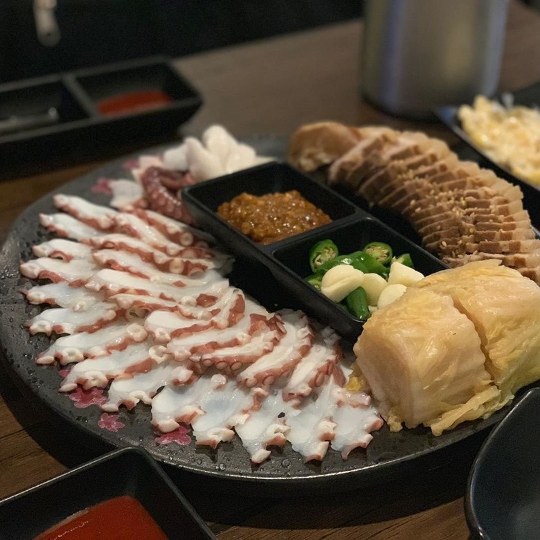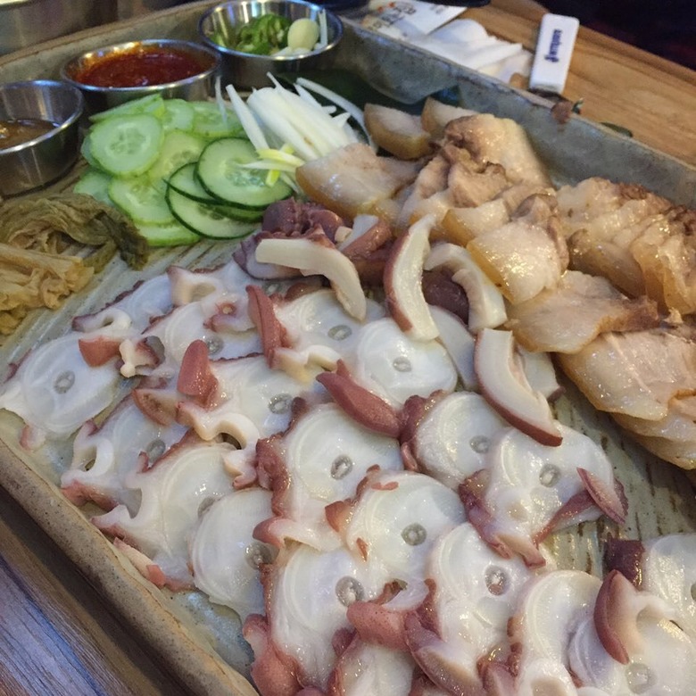 동탄에 위치한 문어의 청춘의 대표 메뉴는 문어 삼합으로 당일 들어온 여수의 싱싱한 활문어만을 사용하고 있다. 오독오독한 식감이 일품인 문어 빨판 부분의 식감을 위해 아주 살짝만 익혀 비칠 정도로 얇게 썰어 내는 것이 이곳의 특징, 부드럽게 감기면서 특유의 식감이 더해져 먹는 맛을 더한다. 여기에 한약재료를 넣고 푹 삶은 건강한 수육과 기름장이나 쌈장, 잘 익은 묵은지를 크게 싸서 먹으면 그야말로 꿀맛, 취향에 따라 초생강이나 부추를 더하면 풍미가 더욱 깊어진다.