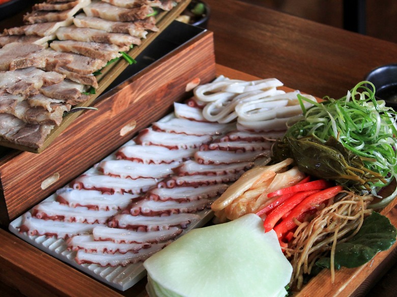 타우린과 오메가가 풍부해 바다의 피로 회복제라고 불리는 문어는 다양한 방법으로 요리할 수 있겠지만 문어 본연의 맛과 식감을 가장 잘 느낄 수 있는 것은 뭐니 뭐니 해도 물에 살짝 데쳐 먹는 숙회다. 적당한 타이밍으로 데쳐낸 문어는 그 식감이 매우 쫄깃쫄깃하고 담백하면서도 고소함, 바다의 풍미까지 모두 갖고 있어 기름장 혹은 초장에 살짝 찍어 먹는 것만으로도 맛있는데 여기에 몇 가지 메뉴를 더해 삼합으로 즐기면 또 다른 별미가 된다. 지역이나 가게에 따라 삼합에 들어가는 메뉴가 조금씩 달라지긴 하지만 그 어느 것 하나 문어 본래의 맛을 해치지 않고 맛의 시너지를 이끌어낸다. 문어와 함께 즐기는 삼합 메뉴, 양도 푸짐한 만큼 여럿이 함께 즐길 수 있는 곳을 찾아가 보자.