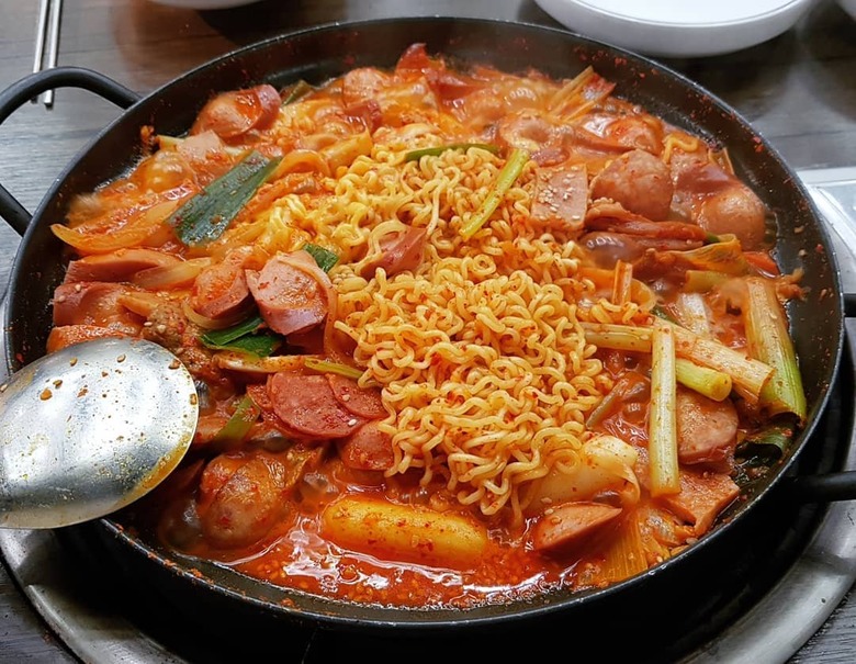 고기와 해산물, 곱창은 물론이고 마장동에서는 감칠맛 있는 국물의 부대찌개까지 맛볼 수 있다. 마장역 바로 가까이 위치한 이곳에는 부대찌개와 부대볶음, 소시지구이 등의 메인 메뉴와 계란말이와 각종 면사리, 만두 옹심이, 치즈 사리 등의 추가 메뉴가 있다. 양이 푸짐하며 들어가는 구성도 괜찮은 가성비가 훌륭한 음식점이다. 칼칼한 국물 안에는 두부와 햄, 떡, 파 등의 재료가 풍성하며 밥과 함께 먹으면 간단하면서도 든든한 한 끼 식사가 가능하다.