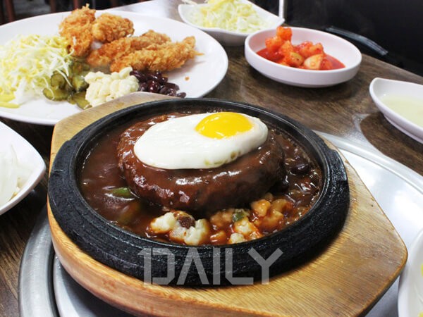 경양식에서 절대 빠질 수 없는 것이 육즙 가득한 함박스테이크다. 맛있는 함박스테이크를 아주 저렴하게 먹을 수 있는 곳이다. 주문을 하면 조촐한 스프와 양배추 샐러드가 먼저 나오고 콩나물국과 깍두기가 함께 차려진다. 나무 받침이 있는 돌판 그릇마저 정겨운 옛 모양 그대로다. 반숙 계란 프라이가 올라간 함박스테이크는 큼지막하게 잘라 입안 가득 넣어 먹어야 제맛이다. 잡내 없이 부드러운 맛이 훌륭하다. 한 쪽 귀퉁이를 차지하고 있는 마카로니 샐러드도 함박과 잘 어울린다.