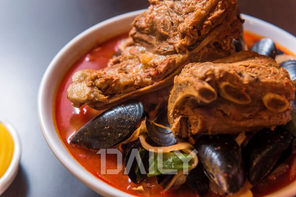 보통 짬뽕에는 해산물을 넣어 시원하게 끓여 내거나 혹은 돼지고기를 넣어 살짝 묵직하게 먹는데 이곳에서는 독특한 비주얼의 짬뽕을 만나볼 수 있다. 가게 이름처럼 큰 뼈가 통째로 들어 있는 짬뽕으로 흡사 뼈다귀 해장국 같은 느낌을 준다. 살이 많은 돼지 목뼈만 골라 각종 양념을 더해 삶은 후 뜸을 들여 사골과 민물새우를 넣고 12시간 이상 푹 끓인 육수에 함께 얹어주기 때문에 얼큰하고 진한 국물 맛과 쫄깃하면서도 부드러운 고기의 맛이 잘 어우러진다.