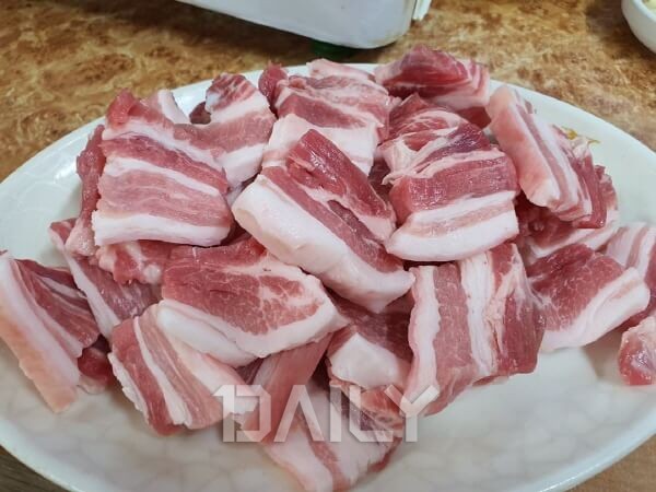 지역 주민들 사이에서는 이미 소문난 정육 식당이다. 한우 등심도 팔고 차돌박이도 팔지만 이곳의 진리는 뭐니 뭐니 해도 생 삼겹살이다. 고기를 잘 모르는 사람이라고 하더라도 주문한 삼겹살이 등장하면 정말 좋아 보인다는 느낌이 들 정도로 삼겹살의 퀄리티가 남다르다. 군더더기 없이 심플한 밑반찬 몇 가지와 즐겁게 고기를 굽기 시작하면 되는데 고기를 다 먹은 후에는 아까 그 밑반찬들이 빛을 발하는 시간이다. 불판에 다 올려 볶음밥으로 만들어 먹으면 여느 곳과는 또 다른 맛의 볶음밥으로 먹기 좋다.