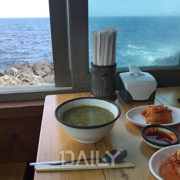 맛도 맛이지만 식당 삼면 모두 바다가 보이는 풍경으로 제주의 푸른 바다를 보면서 식사를 할 수 있어 감동이 두 배가 되는 곳이다. 싱싱한 해산물 요리가 주를 이루는데 특히 이곳의 전복죽은 매우 유명하다. 주문 즉시 만들어 시간은 다소 걸리지만 내장을 듬뿍 넣어 색감도 진하고 고소한 맛이 일품이다. 게다가 전복 살도 두툼하게 썰어 넣어주기 때문에 씹는 식감도 상당히 재미있다. 이외에도 전복구이와 소라 찜, 시즌에만 나오는 홍해삼 등도 맛볼 수 있다.