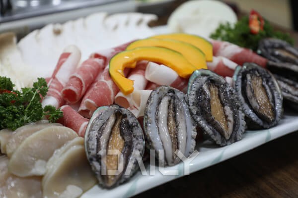 전복죽이나 숙회, 전복 회 등 일반적인 메뉴 대신 좀 더 이색적인 메뉴로 입맛을 끌어올리고 싶다면 막퍼 전복에서 전복 삼합 구이를 먹어보자. 전복 삼합 구이가 다소 생소할 수도 있겠지만 삼합에 들어가는 재료를 살펴보면 누구나 맛있게 즐길 수 있다. 키조개 관자와 차돌박이, 그리고 싱싱한 완도산 전복을 사용하는데 사장님을 비롯, 직원들이 제일 맛있는 순서대로 직접 구워주기 때문에 눈 크게 뜨고 기다리기만 하면 된다. 채소 위에 삼합과 갈치 속젓을 올려 먹으면 꿀맛의 조화를 느껴볼 수 있다.