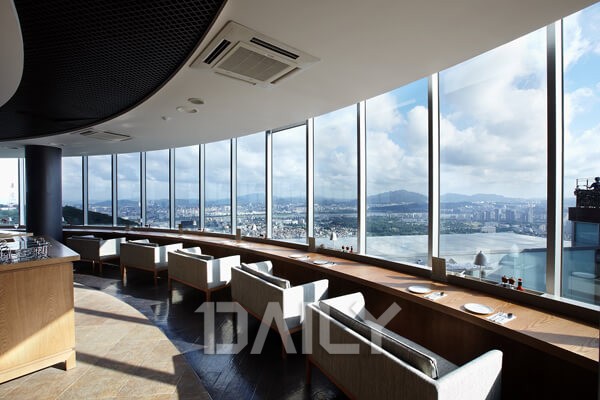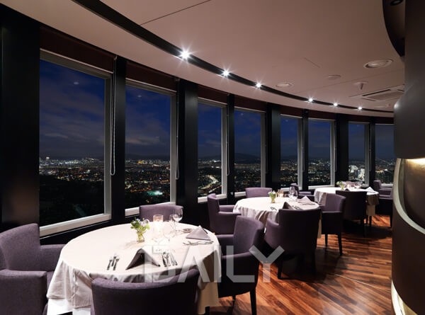 남산타워의 풍경을 제대로 감상할 수 있는 로맨틱한 분위기의 레스토랑이다. 저녁 시간에 가면 서울의 환상적인 야경을 바라보며 운치 있는 식사를 할 수 있다. 코스로 나오는 점심, 저녁 메뉴는 부담스러운 가격대이지만 특별한 날 색다른 시간을 즐기고 싶다면 한 번쯤 가볼 만한 곳이다. 메인 요리를 포함해 열 가지 정도로 나오는 코스 요리는 연어와 캐비어, 해산물과 치킨 요리, 한우 등 다양한 요리와 디저트까지 한자리에서 맛볼 수 있다는 장점이 있다.