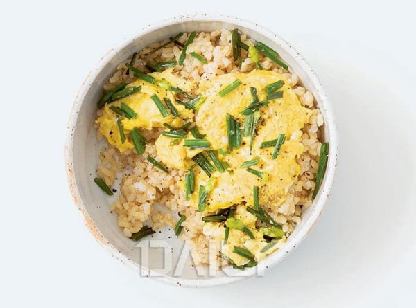 매우 간단하게 할 수 있는 요리지만 영양학적으로도 우수하고 노랗고 초록 초록한 컬러의 비주얼이 주는 효과가 꽤 좋다. 부추와 양파 혹은 버섯 등 냉장고 속 자투리 재료들을 볶아 준다. 부추를 기름에 볶게 되면 매운맛은 사라지고 단맛이 더 배가 되므로 아이들도 먹기 좋다. 야채가 거의 다 볶아졌으면 계란 물을 부어 스크램블처럼 만들어준 후 굴소스나 소금으로 살짝 간을 한 후 따뜻한 밥에 얹어 먹거나 아예 함께 볶아내도 된다.