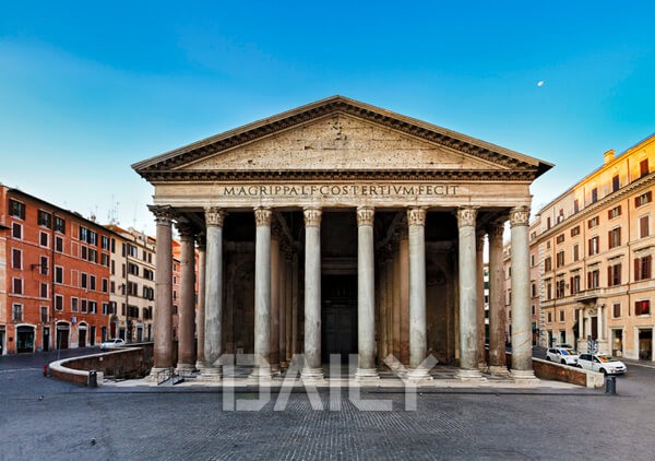 판테온은 모든 신들을 위한 신전으로 로마 제국의 절정기인 하드라이누스 황제에 의해 재건되었다고 한다. 첫 번째 건물은 기원전 27년 아그리파에 의해 세워졌으나 대화재로 불에 타고 다시 재건된 것이다. 판테온의 원형 건물은 돔의 꼭대기 오쿨루스를 통해 빛이 들어와 더욱 성스러운 감동을 받을 수 있는 로마의 대표적인 건축 양식이라 할 수 있다.