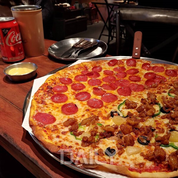 판교에 위치한 빅사이즈는 프리한 분위기의 인테리어를 자랑하며 피자에 맥주를 즐기기에 딱 좋은 트렌디한 음식점이다. 들어가는 입구에 작은 테라스도 있어 더울 때는 야외에서 먹어도 좋을 정도의 분위기를 자랑한다. 베스트 메뉴는 빅사이즈 닭껍질피자이다. 도우가 얇아서 바삭바삭하면서도 너무 무겁지 않게 피자를 즐길 수 있으며 쫄깃한 치즈 위에 바삭하고 달콤한 닭껍질이 올라가 있는 것이 매력이다.