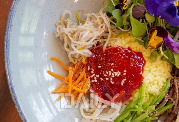- 메뉴: 오색 꽃 비빔밥(10,000원)ㅣ뽕잎 비빔밥(8,000원)ㅣ육회 비빔밥(12,000원)
