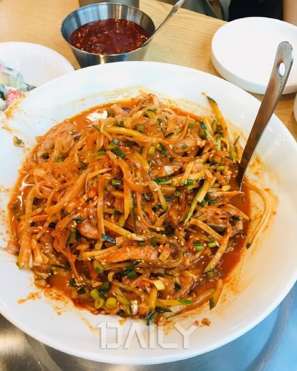 막회로 썰어낸 횟감과 자박자박한 양념 위로 따로 제공되는 얼음을 취향껏 넣어 먹는 물회 스타일을 선보인다. 역시 TVN 수요미식회에 등장해 영덕식 물회와 서울식 물회가 조화를 이룬 곳으로 소개된 바 있다. 신선한 회는 먹기 좋게 채 썰어 얇게 저민 오이와 배 등과 어우러져 아삭아삭한 식감을 더한다. 기본으로 나오는 콩나물국과 멸치, 나물 등의 4-5가지가량의 밑반찬도 슴슴하고 담백하니 맛이 좋은 편이라고. 영덕 강구항 출신의 사장님이 직접 공수하는 회를 사용한단다.