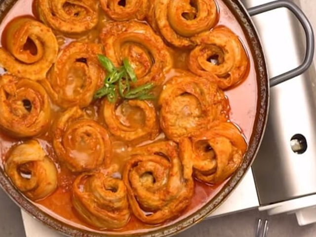 김치찌개는 흔히 돼지고기와 두부를 넣고 끓이는 것으로 알고 있는데 고기를 갈아 신김치에 돌돌 말아 전골 찌개로 끓여도 그 맛이 독특하다. 육수는 다시마 우린물이나 쌀뜨물을 넣고 고기에 약간의 양념을 하여 각종 야채를 넣고 신김치에 말아서 전골을 하면 고기만두 같은 맛과 신김치의 시원한 맛이 손님맞이 할 때도 손색이 없는 요리로 변신한다.