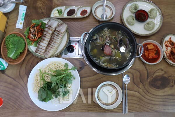 국내산 해산물과 직접 재배한 채소만 사용해 개운한 칼국수를 내는 곳이다. 45년 된 씨간장을 2년간 숙성시킨 된장으로 육수를 내는 게 특징. 시골에서 직접 재배한 콩으로 된장을 만들고 안면도 천일염으로 5년 이상 간수를 뺀 소금을 사용하는 등 재료에 정성을 더했다. 2인, 3인, 4인 인원에 따라 해물칼국수, 수육, 왕만두, 음료의 세트 가격이 달라지며 맑고 얼큰한 종류 중 고를 수 있다. 질 좋은 해산물과 정성껏 만든 수제 재료들로 깊고 진한 맛을 내는 데 자부심이 있는 곳.