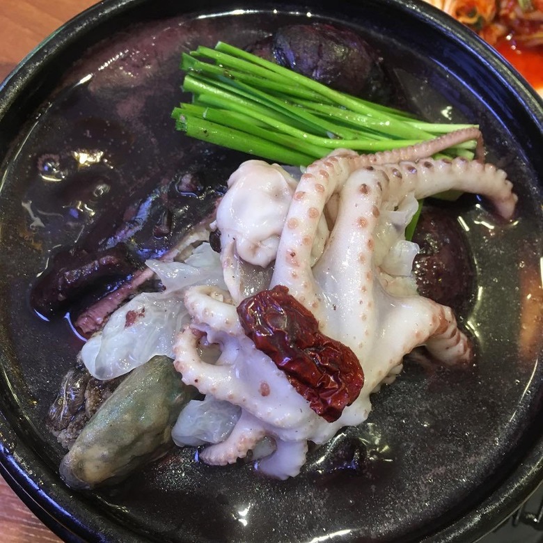 흑미와 낙지, 완도산 생 전복 등을 넣어 영양을 더한 독특한 삼계탕을 만날 수 있는 곳이다. 뚝배기 가득 진득한 흑미와 해물들이 닭 위에 얹어 나온다. 낙지와 전복은 2-3분 정도 뚝배기에서 더 익혀 먹고, 부추는 뱃속 찹쌀과 잘 섞어 먹는 게 더욱 맛있게 먹는 팁이라고. 닭고기 살까지 흑미로 까맣게 물들어 이색적인 풍미를 느낄 수 있다. 흑미와 녹두를 넣어 더욱 진하고 푸짐하게 보양식을 즐길 수 있다. 혼밥족들을 위한 1인용 자리도 창가에 마련되어 편의를 더했다.