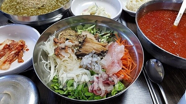 이곳의 주인장은 프로 수중 다이버이자 어부이다. 때문에 직접 잡은 재료의 싱싱함이 보장되어 현지인에게도 유명한 곳이다. 이곳의 시그니처 메뉴는 직접 개발한 육수로 만드는 시원한 물회. 물회 그릇 가득 푸짐하게 얹어진 두툼하고 실한 횟감부터가 남다르다. 꼬들꼬들한 식감이 일품인 뿔소라도 넉넉히 올라간다. 고추장 양념을 한 숟갈 넣고 사이좋게 비벼낸 다음 얼음 육수를 넣어 한 입 가득 맛보면 막혀 있던 속이 풀리면서 짜릿함이 몰려온다. 회와 채소를 골라 먹은 후 남은 육수에 소면을 말아 먹으면 신선놀음이 따로 없다. 이 맛에 반해 울릉도를 다시 찾는다고.