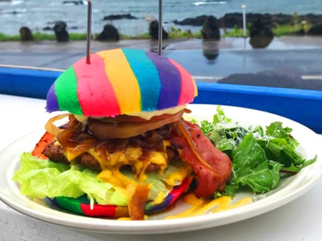 수제버거 전문점 봉끄랑은 고소한 맛이 일품인 땅콩버거와 갈릭 소스의 깊은 맛이 우러나오는 블랙버거를 판매하고 있지만, 트레이드마크는 단연 레인보우버거다. 독특한 색감의 레인보우버거는 무지갯빛 빵과 터질듯한 패티로 비주얼에 한 번 놀라고 그 맛에 한 번 놀란다. 우도의 아름다운 경치는 봉끄랑의 수제버거를 더욱 맛있게 만들어 준다.