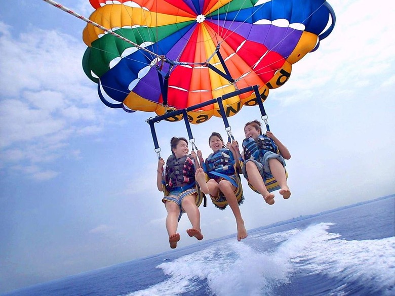 하늘 위에서 오키나와 바다를 고차원으로 감상하고 싶다면 패러세일링을 추천한다. 친구와 함께 타면 짜릿한 스릴감과 재미를 공유할 수 있어 더욱 매력 있는 액티비티다. 어깨에 낙하산을 달고 바다 위 50미터까지 올라가 오키나와의 티 한 점 없는 맑은 하늘과 산호군과 태양빛이 물든 바다를 감상할 수 있다. 제트스키가 낙하산을 끌고 가는 방식으로 별 다른 어려운 동작 없이 몸을 맡기고 흥겨운 분위기에 취할 수 있다.