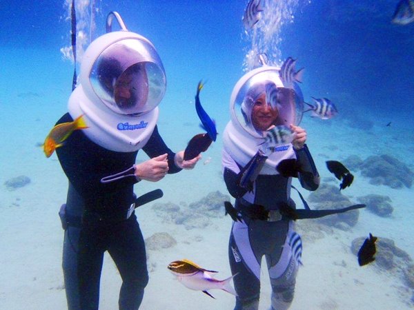 격정적인 바다 휴양도 좋지만 바다 해저 면을 걷는 낭만 있는 분위기를 만끽하고 싶다면 ‘씨워크’를 추천한다. 씨워크는 추라우미 수족관 세소코비치에서 즐길 수 있다. 수영을 하지 못하는 이들이라도 쉽게 즐길 수 있어 어렵지 않게 바다 속 아름다운 경관을 감상할 수 있다. 수심 5M가량까지 내려가 오키나와 바다의 다양한 물고기들과 즐거운 시간을 보낼 수 있다.