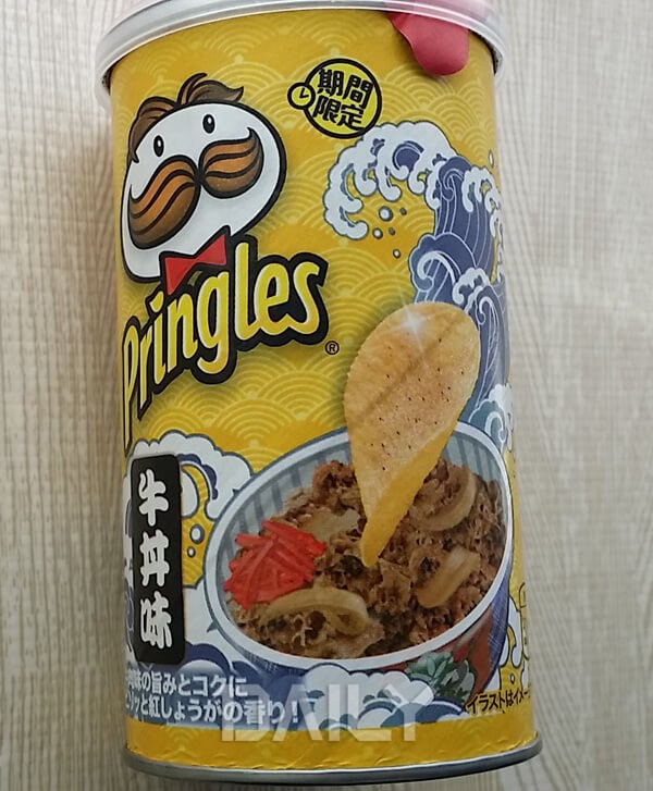 일본의 국민음식 ‘규동’의 맛과, 감자칩의 대명사인 프링글스가 만났다. 규동맛 프링글스라는 과자의 명칭답게, 규동 위에 프링글스가 올라 선 제품의 이미지가 재미있게 느껴진다. 먹어본 이들의 평가에 따르면, 먹는 순간 ‘규동’ 맛이 그럴싸하게 나타난다고 한다. 그러나 뒷맛은 생강 맛이 묘하게 퍼지는 반전 있는 맛이라고. 규동에 대한 재현도가 높다는 평가가 많아서 그런지 오히려 별 생각 없던 규동을 먹고 싶게 하는 그런 맛이 아닐까 추측한다.