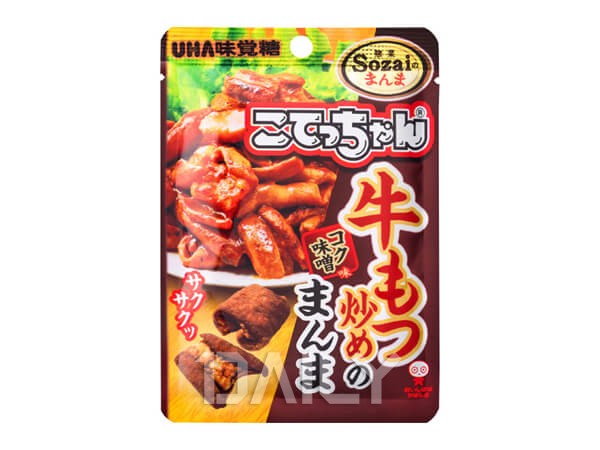 위에서 소개한 UHA 미각당의 또 다른 과자. 바로 소곱창볶음맛 과자다. 안주나 반찬으로 즐기기 좋은 소곱창볶음을 그대로 재현한 듯한 소곱창 모양의 생김새가 돋보인다. 소곱창볶음의 ‘단짠단짠’맛을 그대로 느낄 수 있는 ‘된장맛’으로 완성되었다고 한다. 소곱창볶음을 그대로 튀겨낸 듯 단백질이 풍부하고 술안주로도 일색인 맛이라고 하니, 일본 편의점에 들를 일이 있다면 신비하고 색다른 경험을 위해 맥주와 함께 찾아봐도 좋겠다.