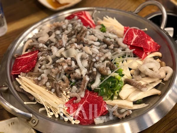 온수골이호낙지는 불낙곱새, 낙곱새 등이 유명한 낙지 요리 전문점이다. 특히 커다란 전골냄비에 산낙지와 새우, 한우 곱창, 당면, 각종 채소와 버섯이 푸짐하게 들어간 산낙곱새가 인기가 많다. 낙지가 살아있느냐, 기절해있나에 따라 가격 차이가 있는데, 산낙지와 불고기, 곱창, 새우가 푸짐하게 들어간 ‘산불낙곱새’는 23,000원, 기절한 낙지를 사용한 ‘기절불낙곱새’는 15,000원으로 자기가 원하는 낙지 상태를 선택할 수 있다. 곱창을 좋아한다면 곱창 더 추가할 수 있고, 소고기, 산낙지 사리도 있어서 양껏 먹을 수 있다. 본 메뉴를 어느 정도 다 먹었다면 매콤한 양념에 밥을 볶아 먹는 건 필수! 후식으로 시원한 식혜까지 먹을 수 있어 제대로 된 한 끼 식사가 가능한 곳이다.