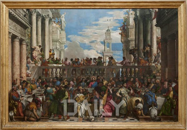 카나에서의 결혼식은 대형 작품으로 폭이 10미터에 이르는 것이 특징이다. 나폴레옹이 정복활동을 하며 가져온 전리품 중에 하나이다. 그림에 등장하는 등장인물만 130여명이나 되니, 보기만 해도 실제 결혼 피로연의 현장에 들어가 있는 듯한 기분이 든다. 성경에도 나와 있고 누구나 잘 알고 있는 예수가 물을 포도주로 변화시키는 기적의 순간을 표현한 것으로 유명하다.