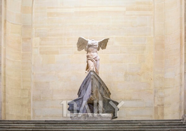 승리의 여신인 니케의 조각상은 배의 선미를 장식하던 장식품으로 사용되었다고 한다. 그에 맞게 루브르박물관에서도 뱃머리 조형물 위에 이 조각상을 올려두어 그 모습을 상상할 수 있도록 전시해두었다. 실제로 보면 여신의 몸과 두 날개만이 남아있는데, 이 정도의 조각상만으로도 충분히 그 가치를 실감해볼 수 있다. 바닷바람에 휘날리는 듯한 여신의 옷자락을 바라보면 경이로울 지경이다.