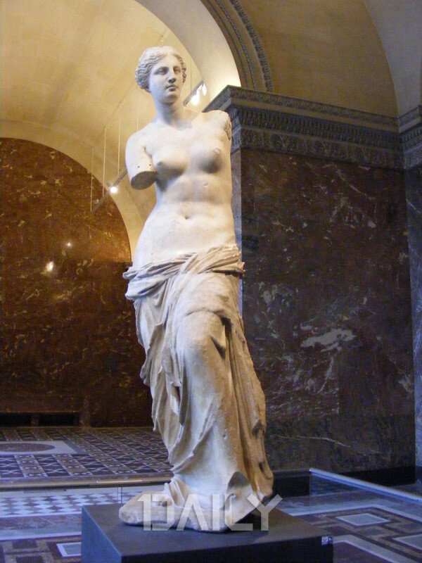 누구나 학창시절 미술책에서 한번쯤은 봤을법한 밀로의 비너스는 고대 그리스의 최고의 비너스 조각으로 평가받고 있다. 대리석으로 만들어졌다고는 믿기 힘든 8등신의 조각상은 완벽한 균형미를 자랑하는 것이 특징이다. 아쉽게도 두 팔이 잘린 형태이지만 굳이 팔을 복원하지 않아도 드러나는 인체의 아름다움이 인상적인 작품이다.