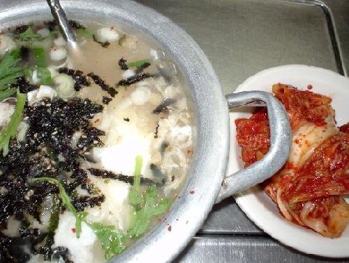 보말은 제주도 말로 고둥을 뜻한다. 그래서 보말을 넣어 죽을 끓이거나 칼국수에 넣으면 연한 녹색 빛을 띠게 된다. 맛있어 보이는 비주얼의 색감은 아니지만 한번 맛보면 그 시원한 국물 맛은 잊을 수가 없다. 보말 때문에 일반 칼국수와는 확연하게 다른 시원함과 바다 내음이 느껴지는 듯하다. 그리고 특이하게 유부를 잔뜩 넣어주는데 서로 다른 식감을 씹는 것도 은근한 재미가 있다. 밑반찬으로 내어주는 콩나물을 칼국수에 넣어 먹어도 좋다.