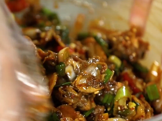 10. 꼬막 살에 양념장, 쪽파를 넣고 가볍게 버무린다.