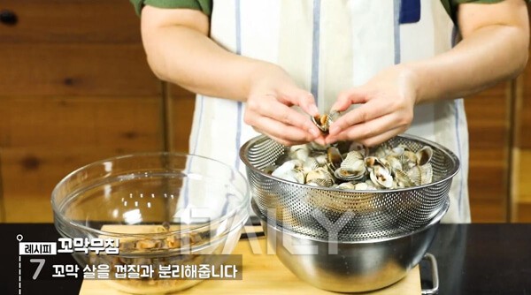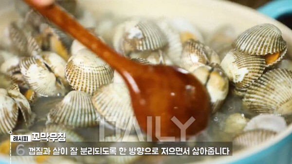 꼬막을 삶을 때 팁! 꼬막을 한 방향으로 저으면서 삶으면 껍질과 살이 잘 분리된다.