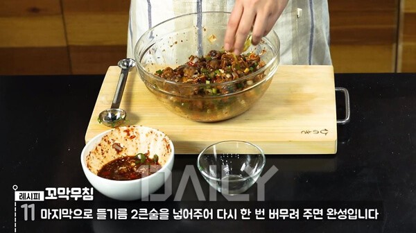 11. 들기름 2 큰 술 넣어 다시 한 번 버무려 주면 꼬막무침 완성!