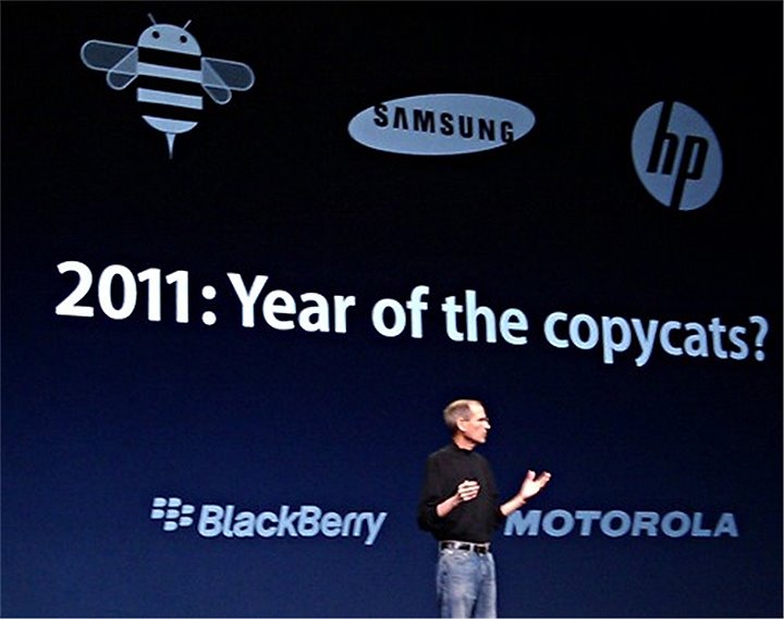 2011년 당시 ‘애플’의 CEO는 ‘아이패드2’를 발표하는 자리에 섰다. 거기서 그는 삼성전자와 모토로라 등에게 ‘카피캣’이라는 칭호를 하사하고 2011년을 ‘카피캣의 해’라며 자못 칭송했다. 스마트폰을 만든 건 자기들인데 계속 그걸 따라 만들면서 아이디어를 ‘도둑질’하는 후발주자들이 마뜩지 않았을 수밖에 없다.
