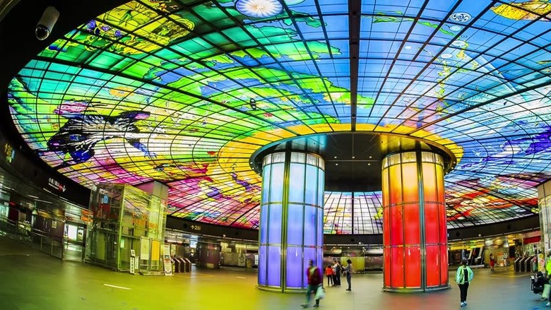 대만의 Formosa Boulevard역은 세계에서 아름다운 지하철역들 중 하나로 꼽힌다. 바로 천장에 있는 글라스 공예 작품 때문. 절반은 지하철역이고, 절반은 만화경인 듯한 이곳은 세계에서 가장 큰 유리 공예 작품을 자랑하는 곳이기도 하다. 4,500개의 판넬로 이루어진 돔에는 "바람, 불, 그리고 시간"이라는 작품명도 따로 갖고 있다.