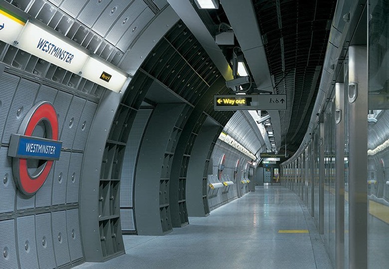 세계 지하철의 조상이라 불리는 런던의 지하철. 하지만 런던의 Westminster역은 새천년이 다가오기 얼마 전에 지어졌다. 그만큼 내부도 미래지향적인 디자인으로 설계되어 있다. 꾸밈없는 콘크리트와 스테인리스 소재들이 미학적으로 배치되어 현대적이고 기능적인 아름다움을 자아내는 지하철역이다.