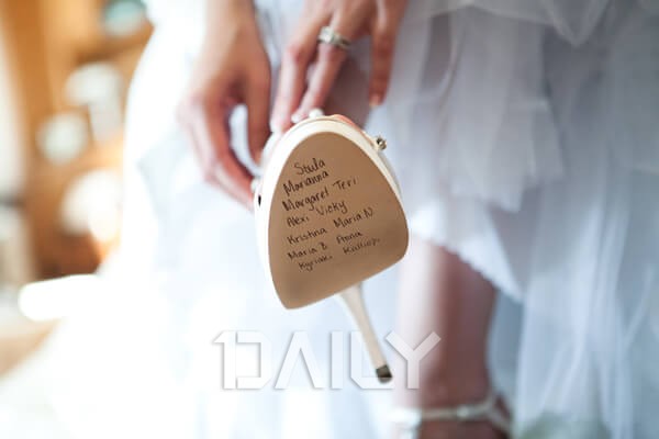 남자 형제와 친정 아빠가 신부에게 신발 한 짝씩을 신겨주면서 가족의 품을 떠나는 딸에게 축복을 전한다. 이때 이 신발 바닥에는 미혼의 신부 친구나 친척의 이름을 적어 놓는데 가장 빨리 닳아 없어지는 이름이 다음번 결혼할 사람이라는 전통이 있다. 특히 그리스의 결혼식은 그 어느 나라보다도 많은 하객이 참석해 신랑 신부를 축복한다. 친척이나 지인이 조금 많을 경우에는 천여 명은 거뜬히 넘는데 신랑신부의 부모들은 일일이 볼 키스를 하며 감사 인사를 건넨다.