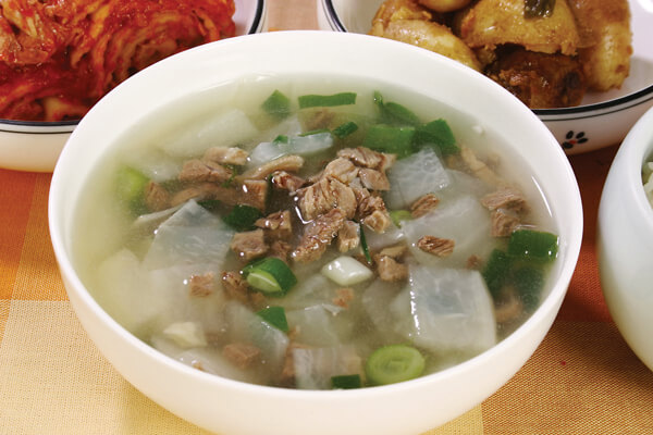 담백하고 깔끔해 아침에 속 편하게 먹기 좋은 국민 국거리 소고기무국. 먼저 국거리용 소고기는 키친타올에 올려 핏물을 제거한다. 깨끗이 씻어 손질한 무는 나박 썰기한다. 냄비에 참기름 1큰술을 두르고 소고기를 볶는다. 고기가 반쯤 익으면 준비한 무를 넣고 같이 볶는다. 분량의 물을 붓고, 간장 3큰술, 다진 마늘 1큰술을 넣고 한소끔 끓여준다. 위에 뜨는 거품은 불순물로 제거한다. 소금으로 간한다. 마지막으로 대파를 송송 썰어 넣어 살짝만 끓여준다.