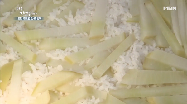 밥맛이 좋기로 소문난 맛집의 비법을 보면 무를 사용하는 경우가 많다. 밥을 지을 때 무를 넣으면 무의 단맛이 밥에 배어들어 달큰한고 맛있는 밥을 즐길 수 있다. 먼저 깨끗이 씻은 무의 껍질을 벗긴다. 무를 적당한 두께로 채를 썰어준다. 쌀은 여러 번 씻어서 물에 불려준다. 밥솥에 불린 쌀을 넣고, 물의 양은 보통 밥 지을 때보다 밥물을 약 10% 정도 적게 넣어준다. 위에 채를 썰어둔 무를 가득 올려준다. 하나의 팁으로 불린 표고버섯을 채를 썰어 넣어주면 맛과 향이 풍부해져 감칠맛이 좋은 밥맛을 즐길 수 있다.